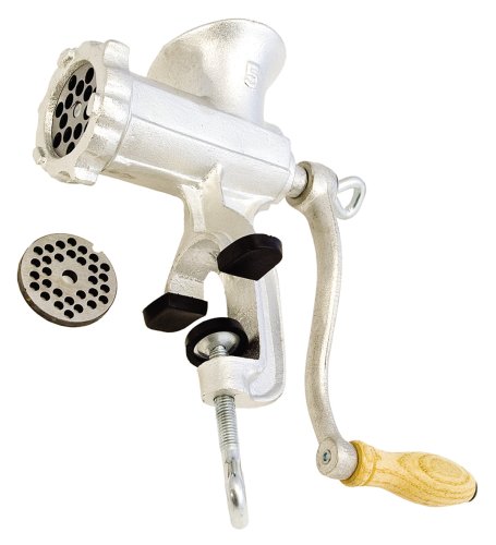 Traditional chromed plated cast iron meat mincer, Size no 5. Two discs for fine and coarse mincing. Minces meat, fruit and vegetables. With rubber feet that clamp firmly onto table or worktop. Mince your own meat for bolognaise sauce, home-made sausages , burgers or shepherds pie. Alternatively mince fruit and cooked vegetables-perfect for baby food.